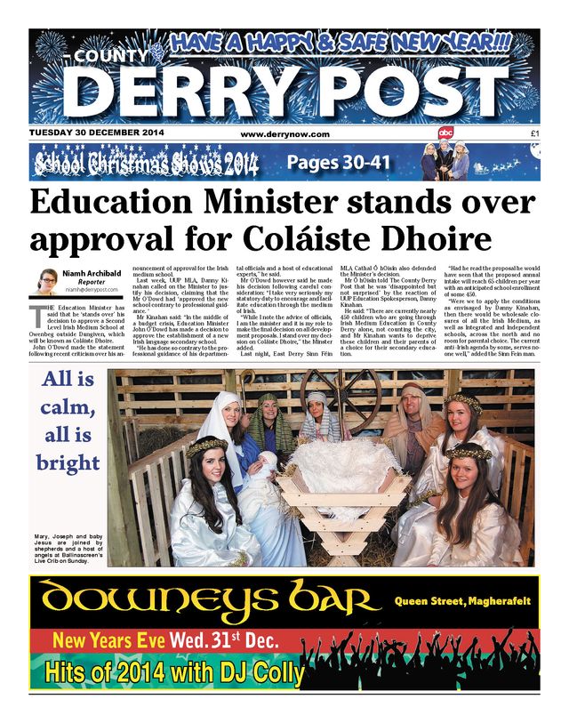 The County Derry Post is your favourite local newspaper. We have the best team of journalists in the County covering the latest breaking news, sport and features. If it is happening in County Derry it is happening in the County Derry Post. You can get the paper in newsagents and digitally - it comes out every Tuesday.