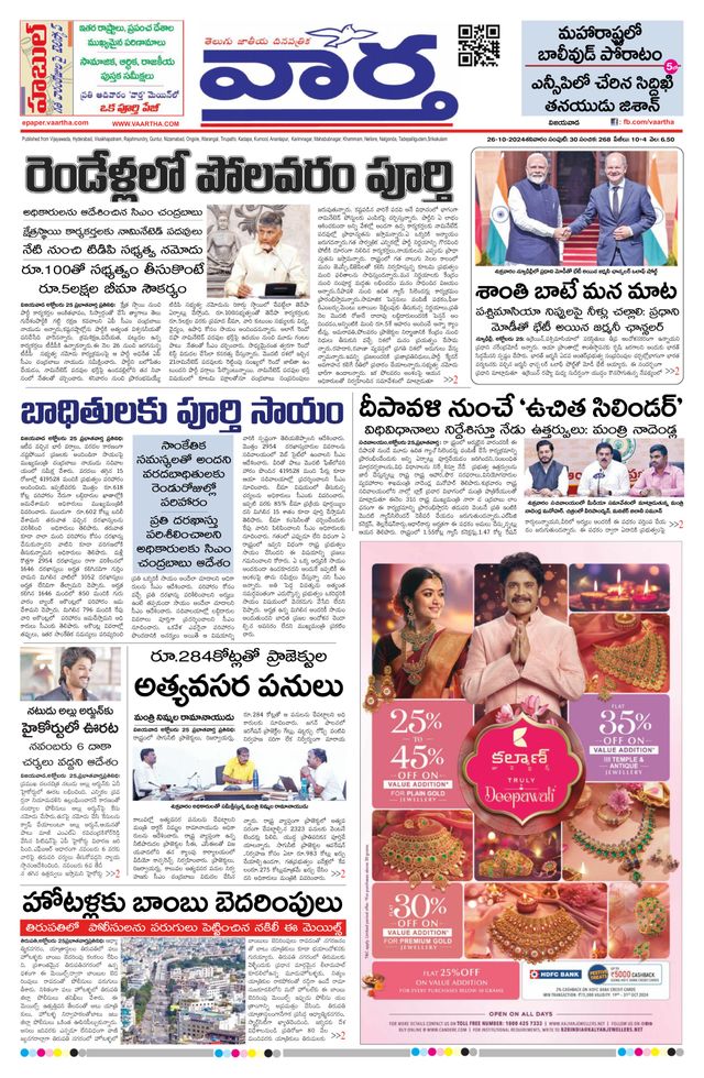 Vaartha – The National Telugu Daily from Hyderabad created history in the Media world in a very short span of time compared to any other newspaper.
