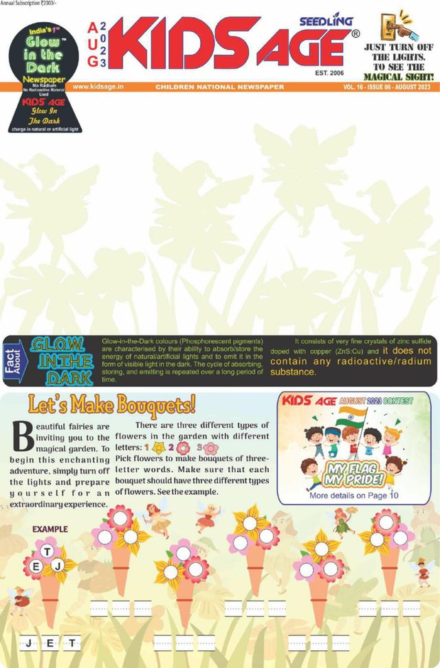 KIDS AGE is a monthly newspaper for the students of Indian schools. It not only provides the latest information of the month which will educate the students and keep them up to date but also tells the students about the latest books and their subjects, provides opportunities to win scholarships and get their work published and other fun-filled activities.