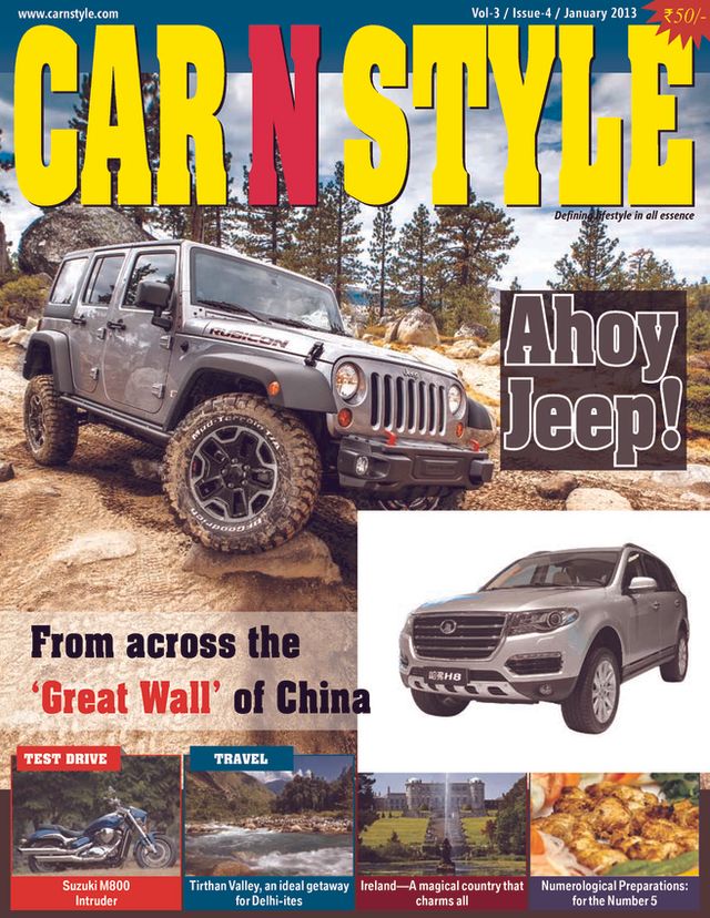 The January 2013 issue has a detailed report on the entry plans of Fiat-Chrysler launching their Jeep brand in India by end of 2013. There's also news that 'Great Wall' of China is contemplating setting up a plant in India. Reports on travel, gadgets, cuisine and snap shot reviews of cars and bikes dominate the remaining pages.