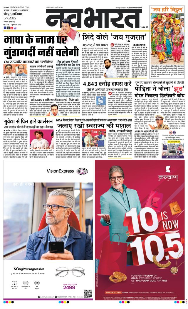 Navabharat (नवभारत) provides all the Latest News in hindi, हिन्दी ख़बर, Taja Hindi Samachar (ताजा हिन्दी समाचार), Breaking News in Hindi, Hindi News (हिंदी न्यूज़) Headlines of India & World on the fingertips through Navabharat Epaper (नवभारत हिंदी न्यूज़ ईपेपर).