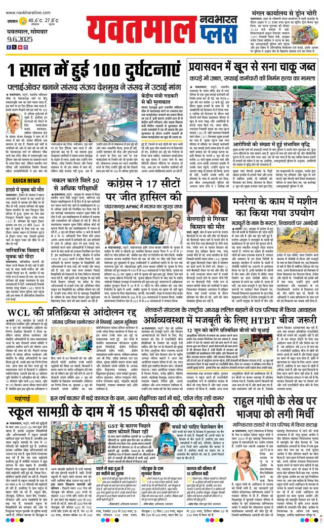 Navabharat (नवभारत) provides all the Latest News in hindi, हिन्दी ख़बर, Taja Hindi Samachar (ताजा हिन्दी समाचार), Breaking News in Hindi, Hindi News (हिंदी न्यूज़) Headlines of India & World on the fingertips through Navabharat Epaper (नवभारत हिंदी न्यूज़ ईपेपर).
