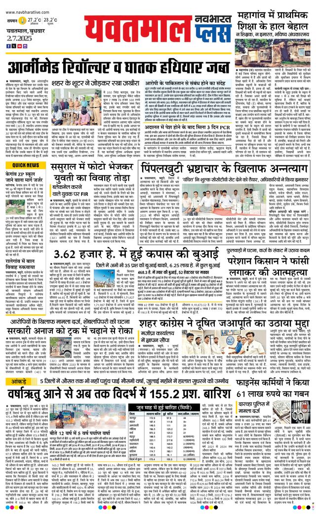Navabharat (नवभारत) provides all the Latest News in hindi, हिन्दी ख़बर, Taja Hindi Samachar (ताजा हिन्दी समाचार), Breaking News in Hindi, Hindi News (हिंदी न्यूज़) Headlines of India & World on the fingertips through Navabharat Epaper (नवभारत हिंदी न्यूज़ ईपेपर).