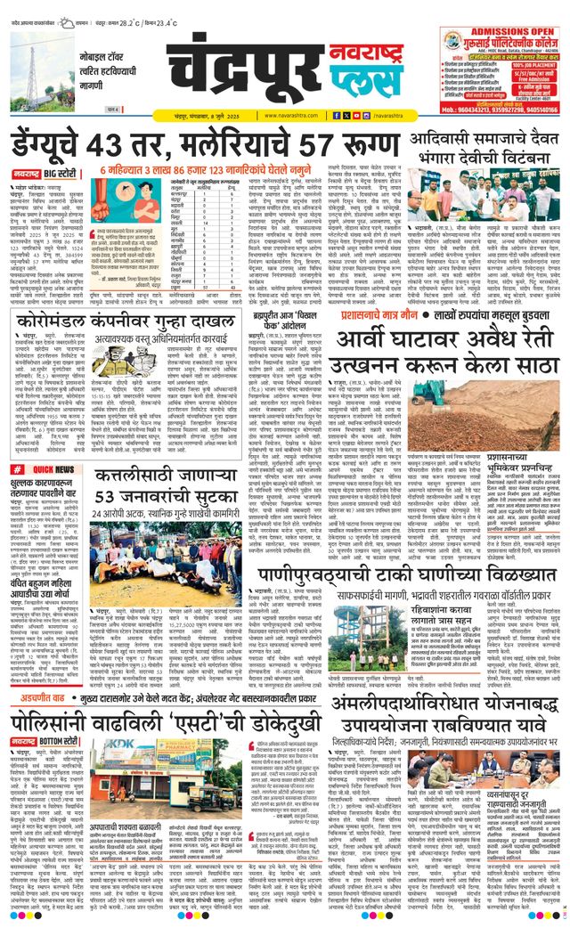 NavaRashtra is an Indian Marathi-language daily with a presence in 14 cities across the Indian states of Maharashtra, Madhya Pradesh, and Chattisgarh. Owned by Ram Gopal Investments Pvt. Ltd. and published by the Navabharat Group, the Navabharat newspaper was founded by Ramgopal Maheshwari, a freedom fighter and journalist, in 1934 in the city of Nagpur in Maharashtra. Published with the intent of upholding value-based journalism and providing a platform for people of the region to voice their problems, the Navabharat newspaper has always strived for India’s development along with the reporting of fact-based news. In Maharashtra, Navabharat publishes 6 main editions (Nagpur, Pune, Mumbai, Chandrapur, Nasik and Amravati), and 3 additional editions (Yavatmal, Akola and Wardha).