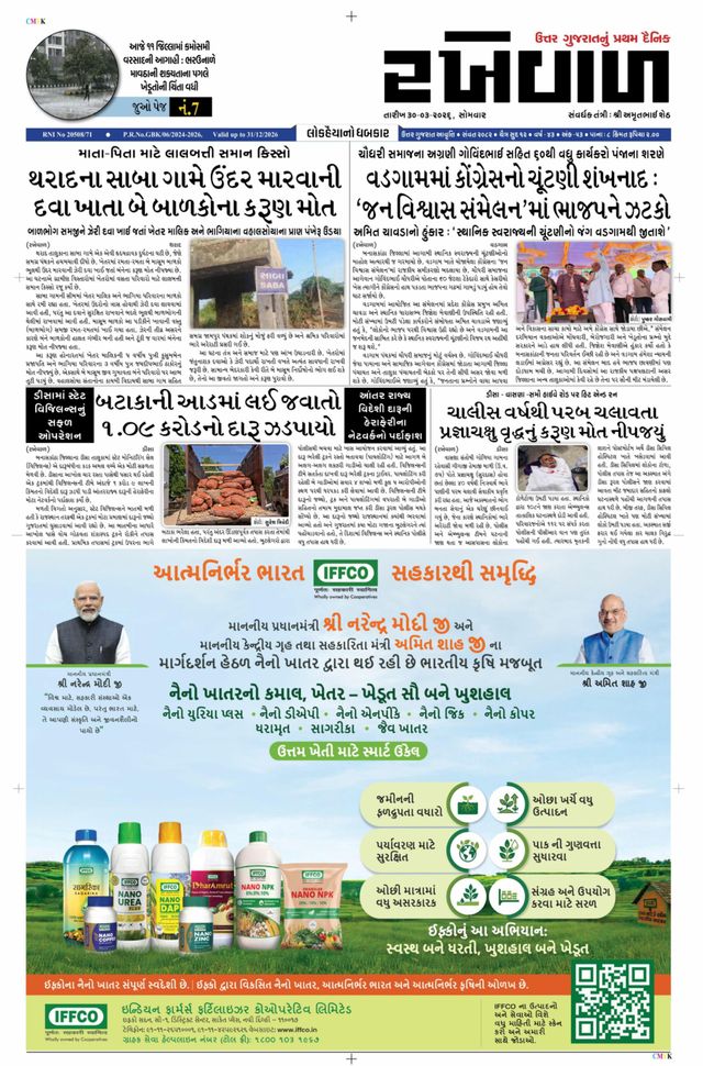 Daily Newspaper based in North Gujarat, serving community since more than 4 decades.