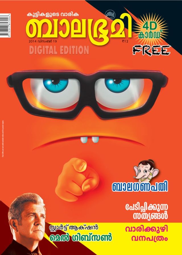 It's a comprehensive children's magazine. With comics, cartoons, series, stories and proverbs, this tiny magazine is all time favorite among the children's of all age groups. Free 4D Card, Chithrakatha-Balaganapathi, Meesa Marjaran, Varikuzhi Vanapathram, E-Man, Eliyanum Puliyanum, Mallanunniyum Villanunniyum, Vikru & Durbalan, Friendsbook, Majic Malu, Silentvalen etc.
