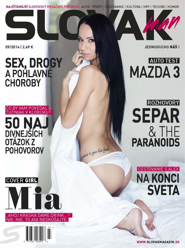 Rozhovory: SEPAR, The Paranoid. Najsexy Slovenky na Instagrame, Cestovateľka Alex: Na konci sveta. Cover Girl: Mia Novodomská, Test: Mazda 3, Fitness bikiny set: Jana Milová, dievča z ulice: Katka, Tattoo Girl: Vera Fox a mnoho ďalšieho.