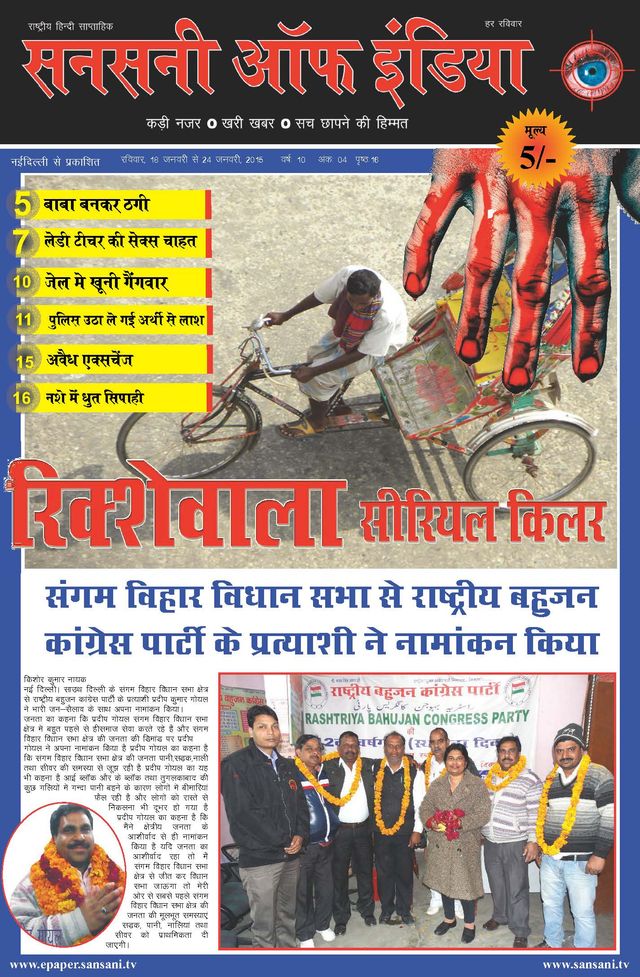 SANSANI OF INDIA (Hindi: Sensational) is an Indian news paper known for its investigative journalism and sting operations in its beginning years. Investigations, Latest News, Politics, Current Affairs, Analysis, Culture. Web : www.sansani.tv