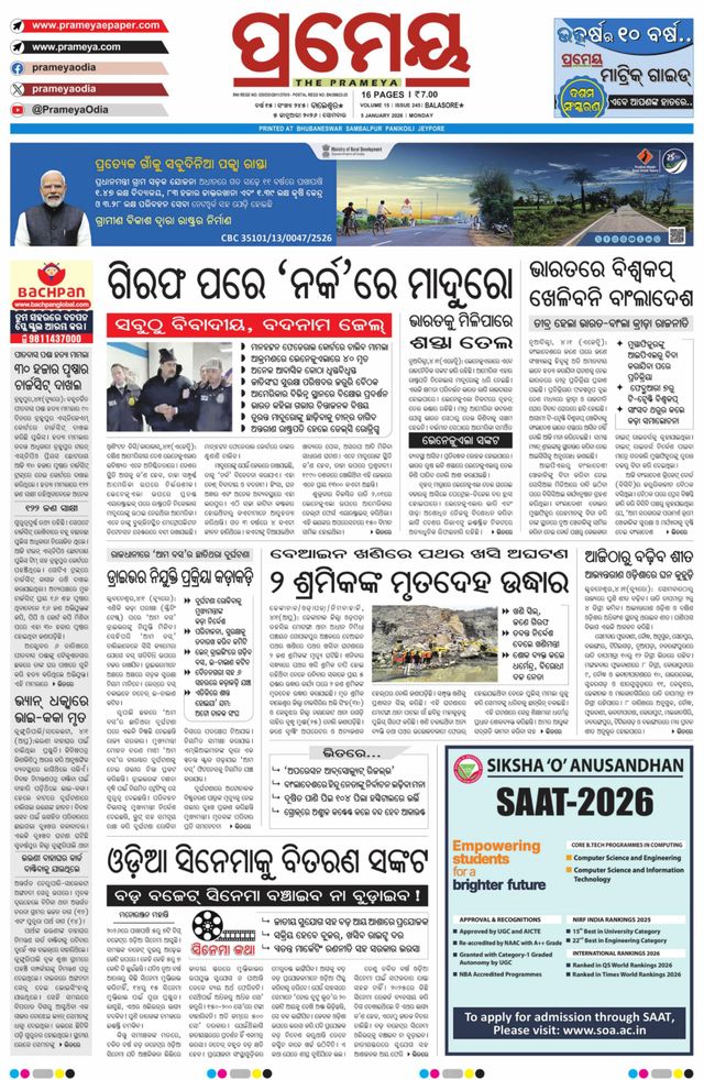 The Prameya is an Indian Oriya language daily newspaper published from Bhubaneswar, Odisha.