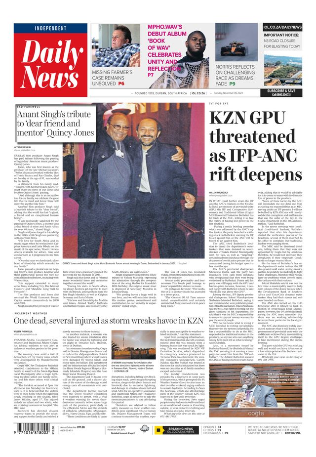 Think Durban, think Daily News. This 139-year-old institution is one of the province's most established brands. With this high recognition factor, and by remaining relevant to its readers through the decades, it commands a trust and special loyalty from readers.It is a daily companion, fully aware that an afternoon title's biggest rival in the 21st century is not other titles, but time. It is warm, familiar, dependable and credible.