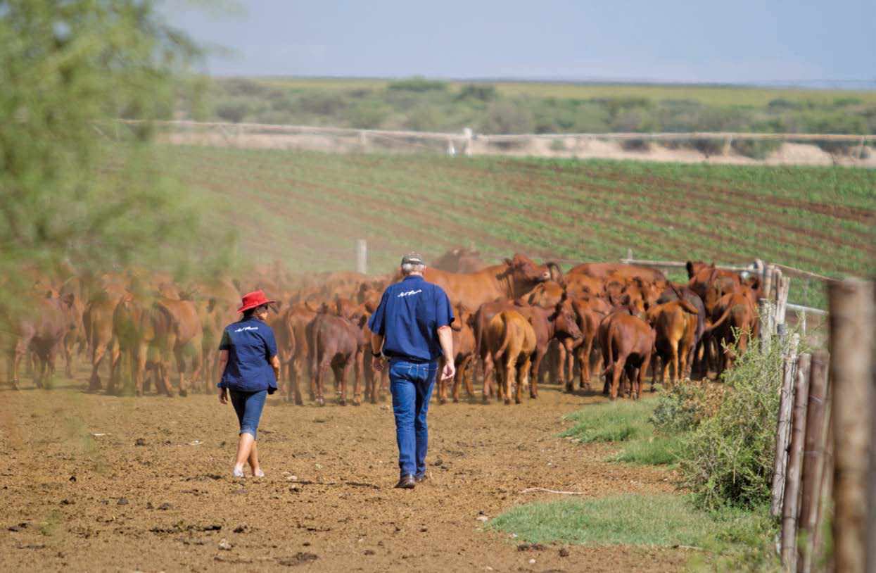 Johan’s focus is on irrigation cropping, while Colleen runs an award-winning Bonsmara stud herd. They are currently also branching out into ecotourism, and their love of nature is evident in signboards cautioning visitors to be on the lookout for meerkats crossing the gravel road up to the house.