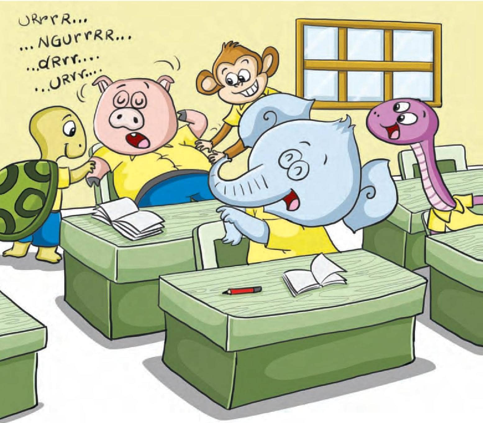 பிக்கியின் குறட்டையால் வகுப்பறை குலுங்கி விட்டது. குழந்தைகளின் சிரிப்பும் சப்தமும் பிக்கியை பாதிக்கவில்லை. அது தூங்கி கொண்டே இருந்தது.