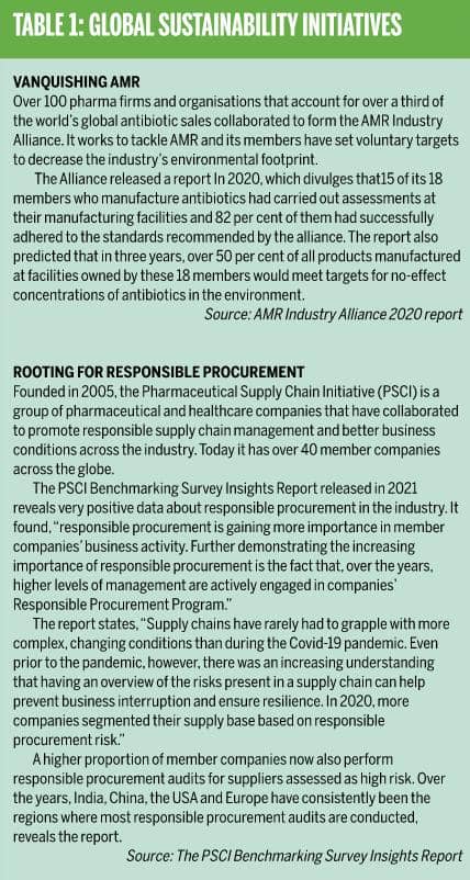 Sustainability as a concept was gaining good traction across industries, globally and in India, before the onset of the COVID-19pandemic. Be it reducing energy consumption or emission of greenhouse gases to curb environmental pollution, improving waste management or optimising water consumption, the pharma industry was identifying and implementing various measures to become more sustainable. Many companies were actively seeking to enhance their impact on the environment and society.