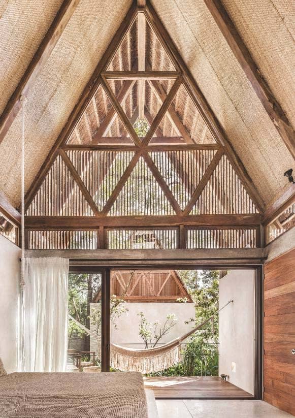 The concept behind this Mexican hideaway resort was simple: make it feel like a village. An uncomplicated brief it may be, but a difficult one to translate when this ‘village’ must also accommodate sleek infinity pools and double-height bedrooms. Tulum-based Jaque Studio oversaw the construction of just four guest lodges here, carefully placing them within dense, verdant foliage without the need to cut the jungle back. While the warren-like, twisting pathways give you the transporting feeling of exploring a hidden Mayan village, the villas are all cool, clean, modern luxury. A hint to the natural surroundings is revealed with local building techniques: dried palm leaves covering the roofs and walls finished in a traditional stucco made from local tree resin.