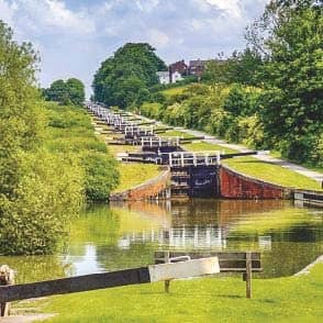 The route Beginning at Tardebigge, near Bromsgrove, and ending in Lapworth. ✣ Don’t leave without enjoying lunch at the Navigation Inn, which has a canal-side beer garden, top-notch food and is the only pub in the country to offer Guinness on handpull.