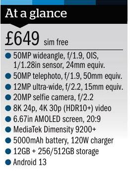 Let’s start with the Leica-branded cameras. The main camera has a wideangle lens, with a 24mm equivalent focal length. This 50MP camera uses a large sensor (for a smartphone) of the 1/1.28in type. There’s PDAF (phase-detection auto-focus), and optical image stabilisation (OIS) to help with low-light shooting. You can shoot at the full resolution of 50MP but to use all of the different shooting modes, the camera will (by default) use pixel-binning, and give you 12.5MP images.