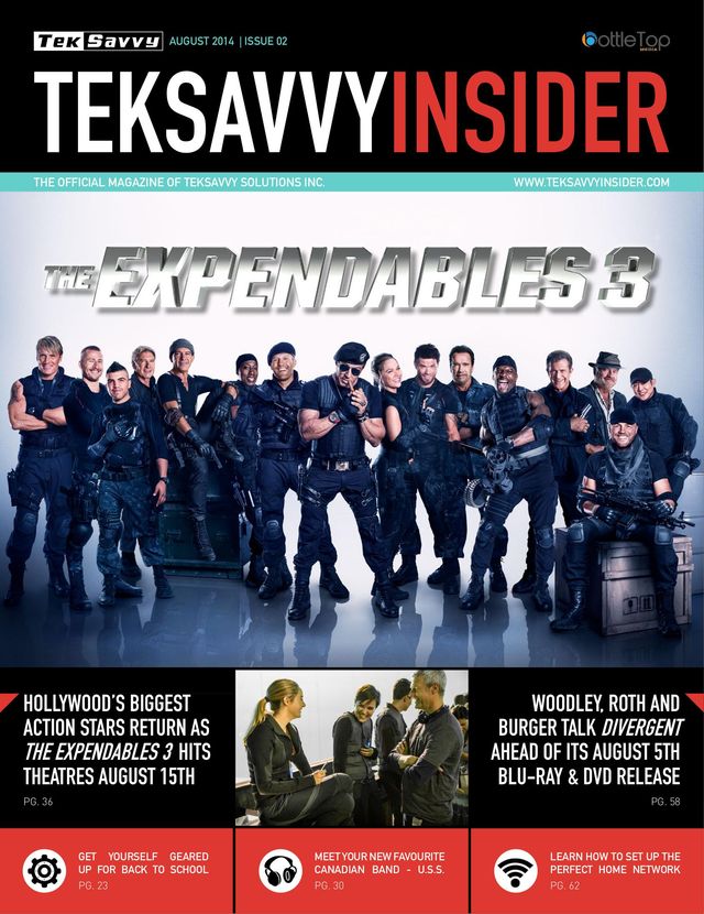 In this month's TekSavvy Insider we speak with Divergent trio Veronica Roth, Shailene Woodley and Neil Burger ahead of the movie's Blu-ray and DVD release on August 5th, as well as looking forward to The Expendables 3, kicking off our two-part Back to School Special coverage, grab a sneak peak at Google's Android L operating system and check out how to build the perfect home network without any issues.