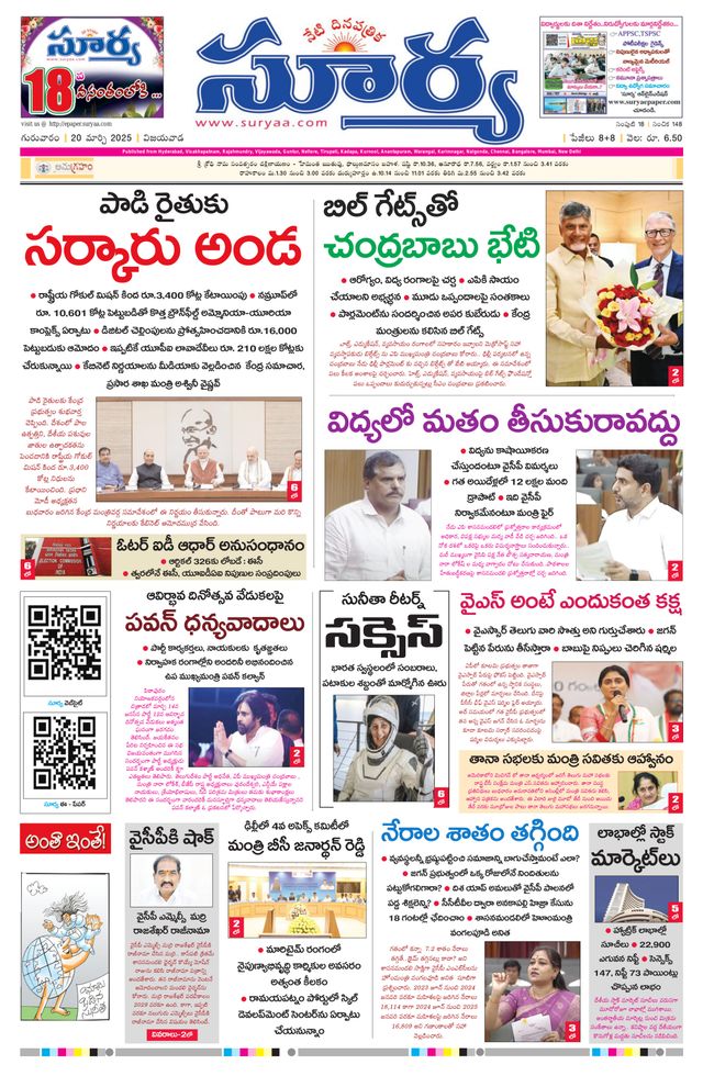 Suryaa is a Telugu-language newspaper headquartered in Hyderabad. This newspaper is promoted by Nukarapu Surya Prakash Rao. It is published from seventeen cities in India.