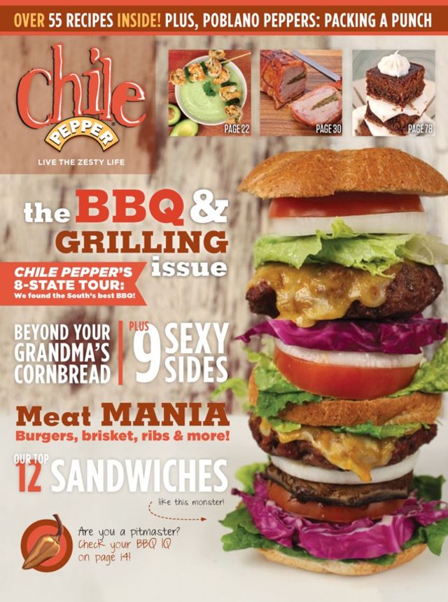 The Barbecue & Grilling Issue; Chile Pepper's 8-state Tour; Poblano Peppers Packing a Punch; 9 Sexy Sides; Our Top 12 Sandwiches; Over 55 Recipes!