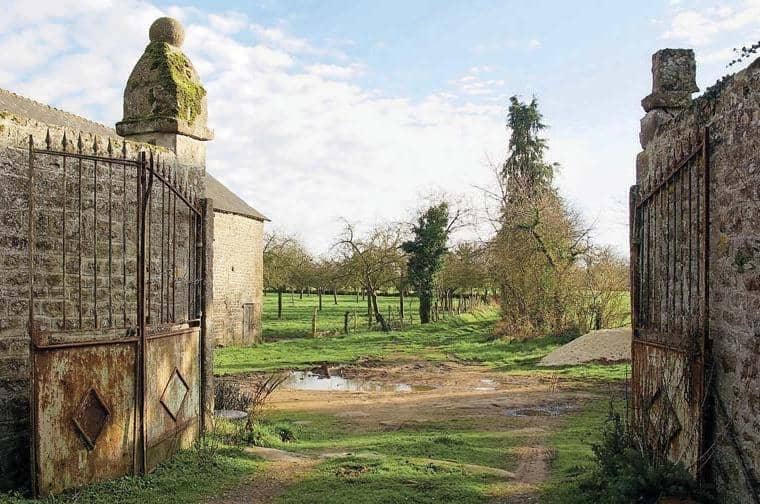 The brocante sign, written on a broken roof slate and resting on a beautifully upholstered armchair, encapsulates the shop’s tasteful look. This barn still houses the old cider press and is one of the many outbuildings here that keeps the property’s history alive. At the back of the barn is a small cottage that would once have accommodated the cider-maker’s staff each season and is currently being redeveloped as a gîte.