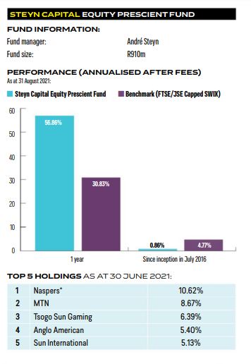 The investment strategy of Steyn Capital’s Equity Prescient Fund is premised on maximising investor capital by buying securities with trading values materially lower than their intrinsic values.
