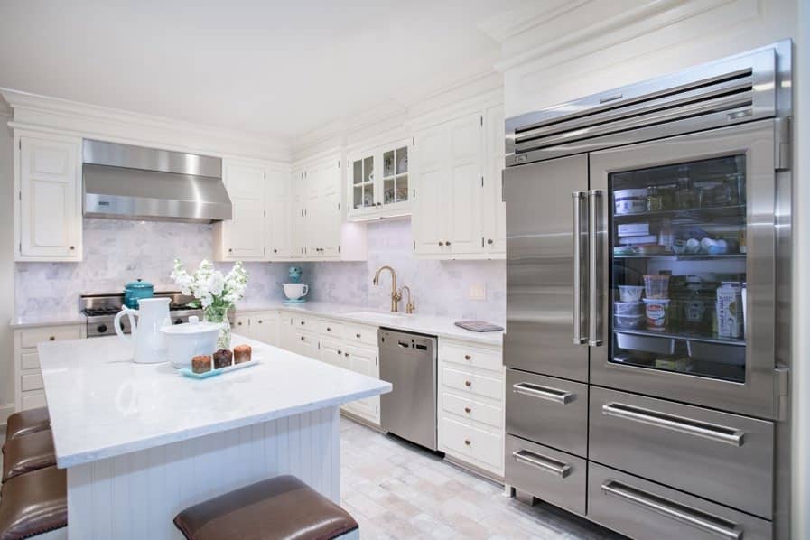 The previous renovation of the French Country home resulted in smart design choices with an ideal layout and good bones with cypress doors and intricate crown moldings. The stately home stands high on a hill that showcases its simplicity, symmetry, and refined elements. The single-level home also provided well-established landscaping and the ideal space to install a swimming pool and guest house. After a cosmetic update that included a kitchen refresh by contractor Louis Wilkinson of Craig Wilkinson, Inc., Leigh and Chad were set to commence establishing their personal style.