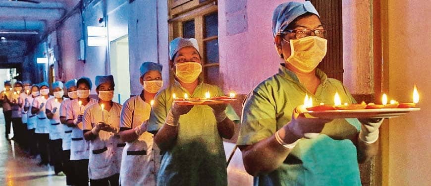 Millions of Indians across the country switched off lights at their homes and lit candles and diyas or turned on mobile phone torches on Sunday night, responding to Prime Minister Narendra Modi's appeal to show the nation's collective resolve and solidarity in its fight against Coronavirus with this symbolic gesture.
