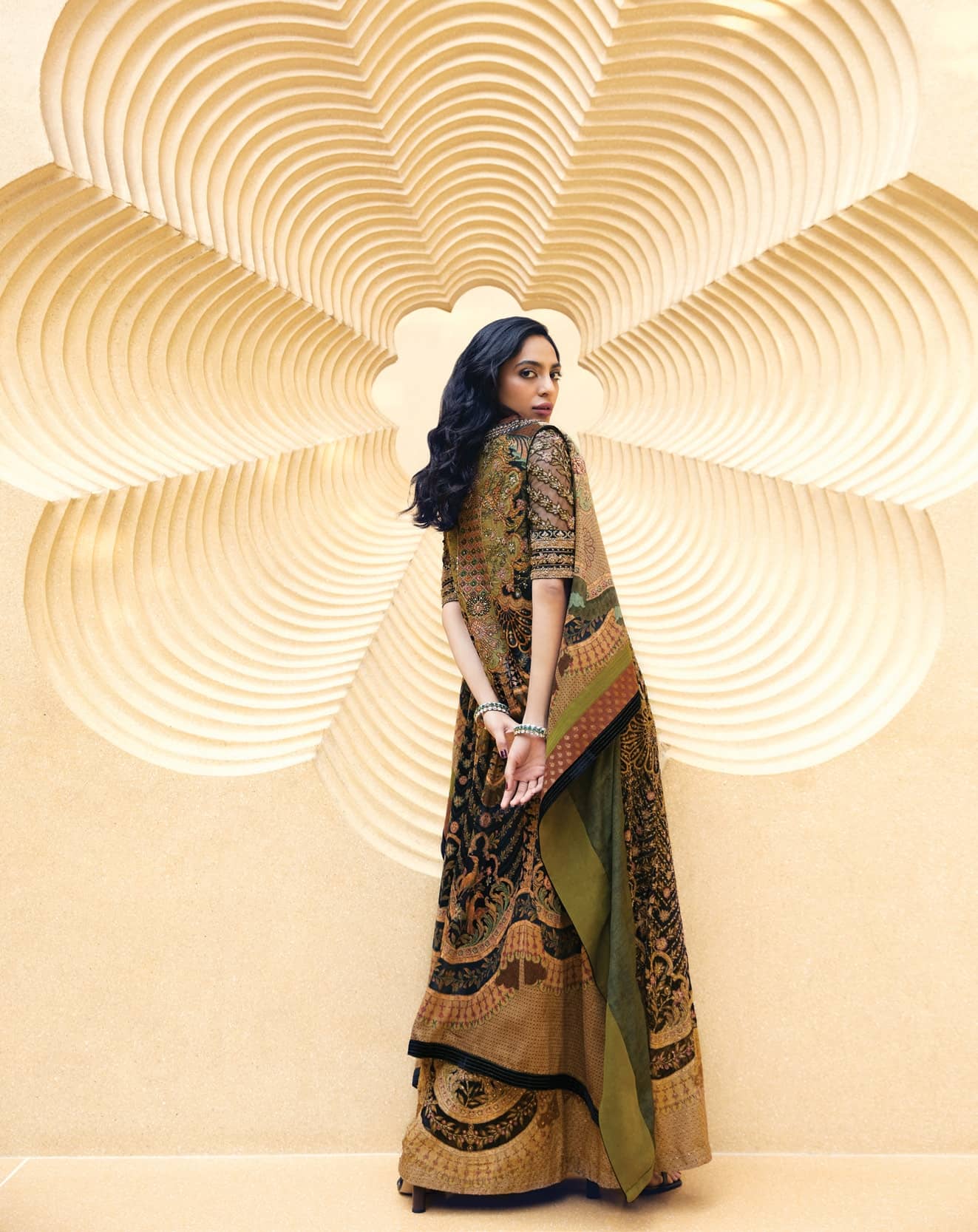 There’s a quiet confidence to our cover star Sobhita Dhulipala, as she strikes a languid pose by the pool, clad in a champagne-coloured lehenga by RI Ritu Kumar. We’re at The Roseate in Delhi on a sunny winter’s day, and there’s a small army of people buzzing around the 27-year-old, eager to get the perfect shot—which is not hard for Dhulipala to achieve. An Internet sensation, she is casually aware of her intriguing persona, her eyes exuding a sense of mystery, and an innate power that she draws from her lean, feminine physique. You can’t quite put your finger on it, but know you’re in the presence of a rising star.