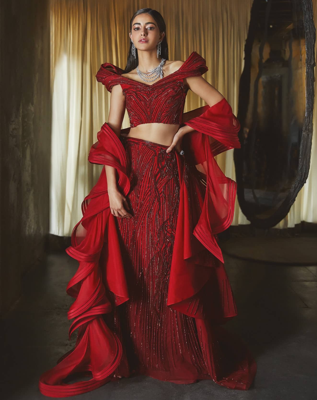 Even after a late night at a big Bollywood party, Ananya Panday arrives at our shoot in south Mumbai right on time. The bright-eyed, fresh-faced star is in shorts and a white T-shirt, eager and enthusiastic to get in front of the camera. For the shoot, she slips into the role of a poised, modern bride dressed in Gaurav Gupta’s sculptural couture, a far cry from the demanding high-school teenager she played in her debut film, Student of the Year 2. After the shoot, Panday answers questions over the phone while she is resting at home in between all-nighter shoots for her next project, Khaali Peeli, which is set to release next year.