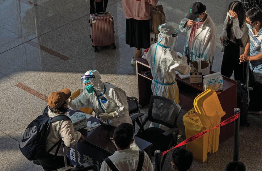 3 Swabbing travelers at Changshui International Airport, the main transport hub for Yunnan province