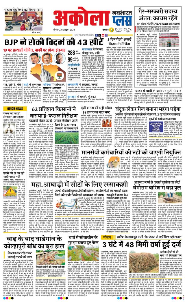 Navabharat (नवभारत) provides all the Latest News in hindi, हिन्दी ख़बर, Taja Hindi Samachar (ताजा हिन्दी समाचार), Breaking News in Hindi, Hindi News (हिंदी न्यूज़) Headlines of India & World on the fingertips through Navabharat Epaper (नवभारत हिंदी न्यूज़ ईपेपर).