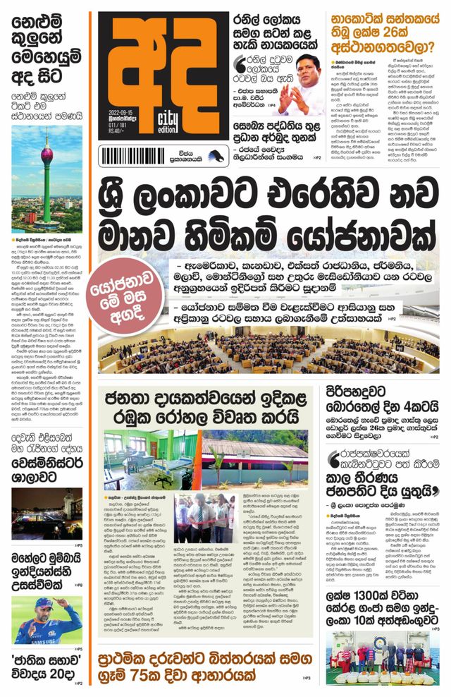 Adha:A National Sinhala daily paper, economically priced at Rs.10 to attract non-readers of newspapers and to encourage forming the habit of reading by the young generation www.ada.lka