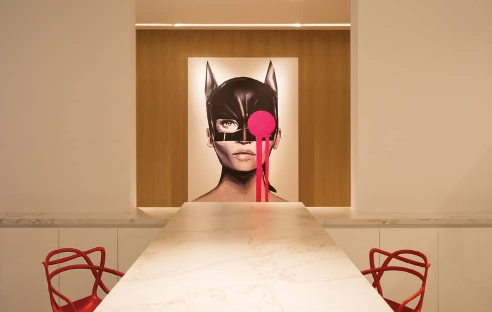 “Khalid’s wishes were very simple,” says Guelaff. “He wanted a bridge-like opening over the lower basement areas, allowing direct interaction with the living spaces, rejecting the typical foyer arrival or double-height spaces. We therefore created a simple arrival into a multipurpose living area, with a view to the outdoor pool as well as a customisable open kitchen. Due to the expansive main area, smart structural design was imperative to make sure the architecture matched the clients’ brief.”