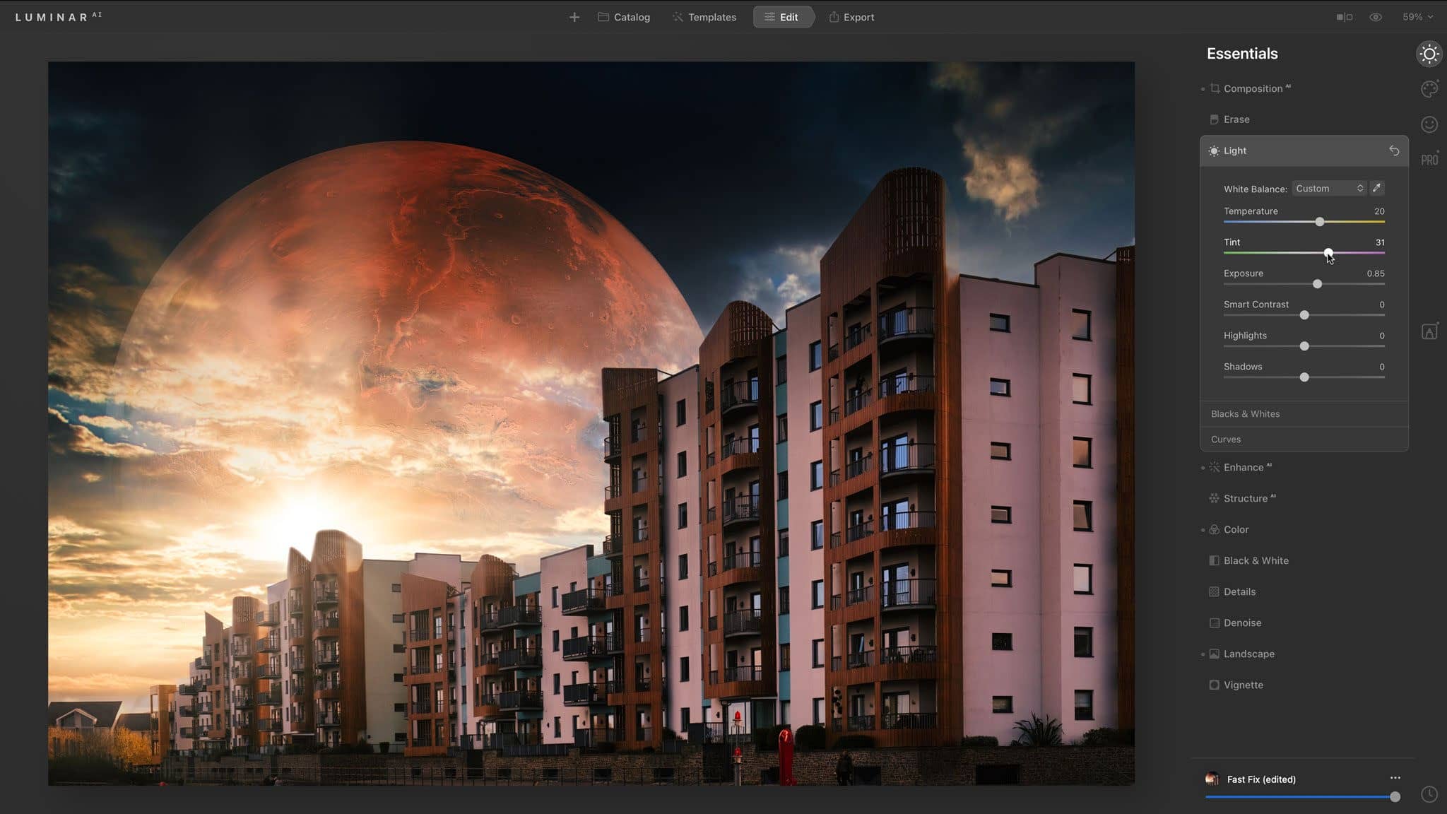 Luminar AI is an all-in-one nondestructive photo cataloguing and editing program. You can use it to browse, filter and organise your photos, and any changes you make with templates or filters can be reversed or modified at any time. It’s designed to be simple; when you select a photo for editing, the software’s AI will analyse your subject matter and suggest templates (or Looks in Luminar terminology) that present a variety of different editing styles.