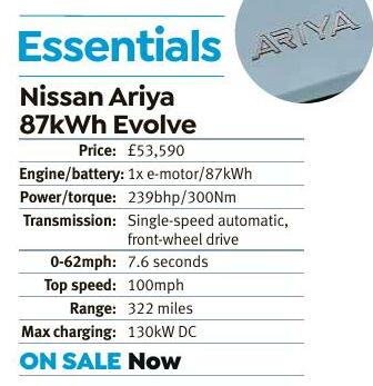 And yet, good though the initial Ariya line-up was, the car we're driving has the potential to raise its bar even higher. It's the 87kWh Evolve, which mixes the larger battery capacity with just a single front-mounted motor that produces 239bhp.
