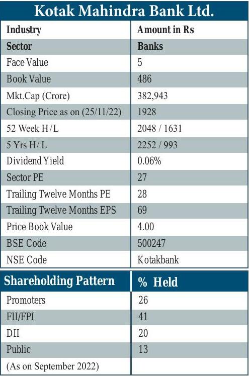 Kotak Mahindra Bank Limited with headquarters in Mumbai; is India’s third largest private sector bank by market capitalisation as of November 2021.