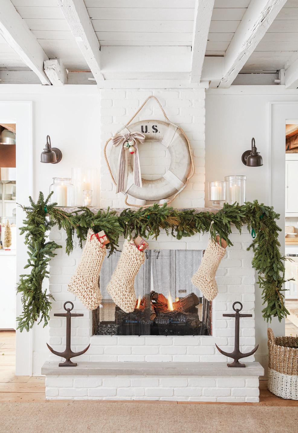Located in a small maritime town in Long Island’s North Fork, the house takes its cue from simple surroundings. ‘This is a fishing community and at this time of year our local decorations pay homage to that,’ says Lori, whose homeware store, based on her love of white decor, is a ten-minute drive away in Southold. ‘Illuminated mermaids are suspended from telephone poles and the streets are strung with replica ships. We can walk to the grocery store or post office, and doing so in the snow is especially beautiful.’