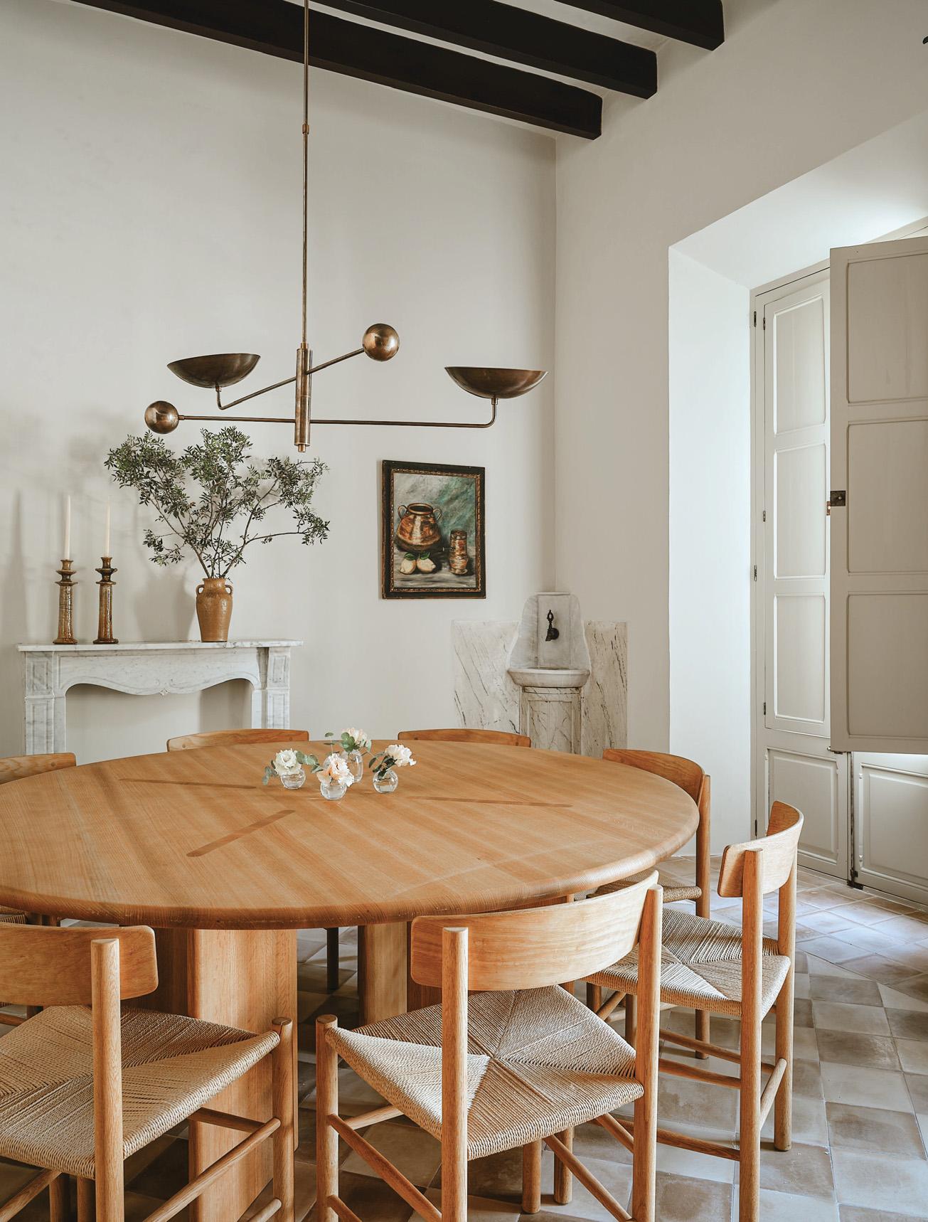 ‘We’ve always liked big round tables as they’re a sociable way to eat,’ says Christoffer. ‘We had this one made to work with the chairs.’ The original marble water fountain has been converted to supply filtered water.
