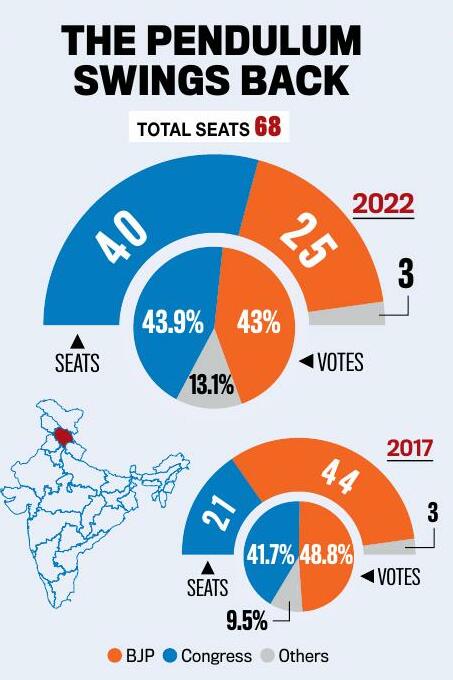 It’s time for the upper reaches of Himachal Pradesh to receive the initial layers of seasonal snow, and meteorologists are keeping a hawk’s eye on how the winter progresses. The days have been too warm till now—one is speaking purely of the weather here—but the mid-Himalayan state seems on course for a white New Year. Temperatures, meanwhile, were soaring to a merry high on Shimla’s Ridge on December 8 as the local Congress throngs brought out the celebratory marigold garlands, beat the nagada and trumpeted a rare moment of triumph on the curved horns of the ransingha. Yes, Himachal Pradesh does tend to swing from one party to the other every five years—and it kept that pattern alive this time—but then a victory against the BJP does not come every day for the Congress. This one has come after four long years of electoral depression: the last time the Grand Old Party had won any assembly election on its own was in 2018. So, for the cadre and the leadership, the fine print could wait. For now, jubilation was in order. However small a portion of India’s political map Himachal represents, and however slender the actual margin of votes, this seemed like spring.