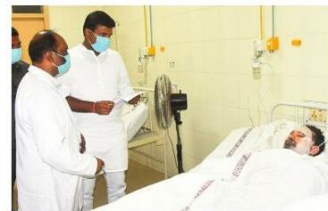 ఆస్పత్రిలో చికిత్స పొందుతున్న క్షతగాత్రులను పరామర్శిస్తున్న మంత్రి అమర్నాథ్