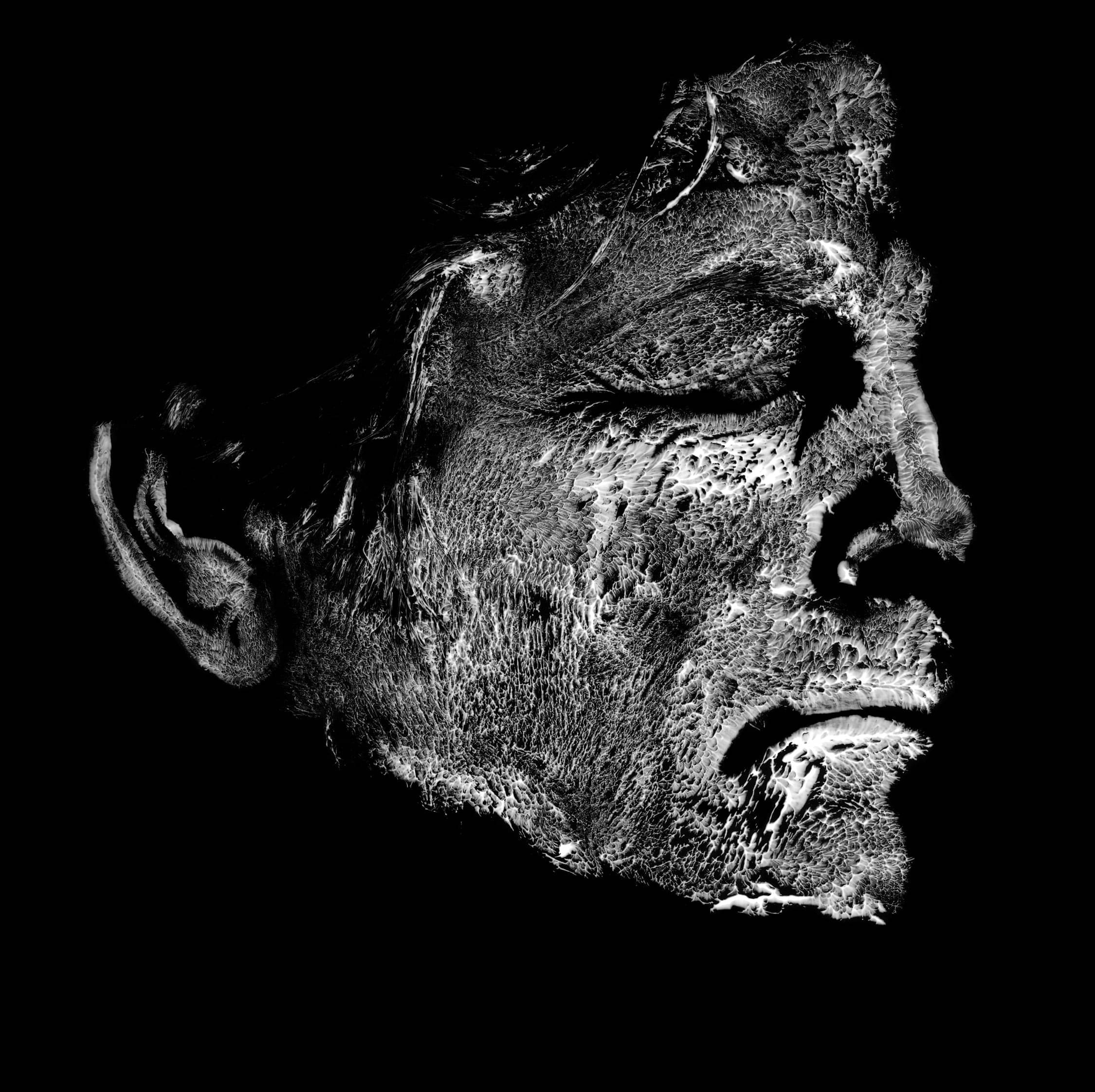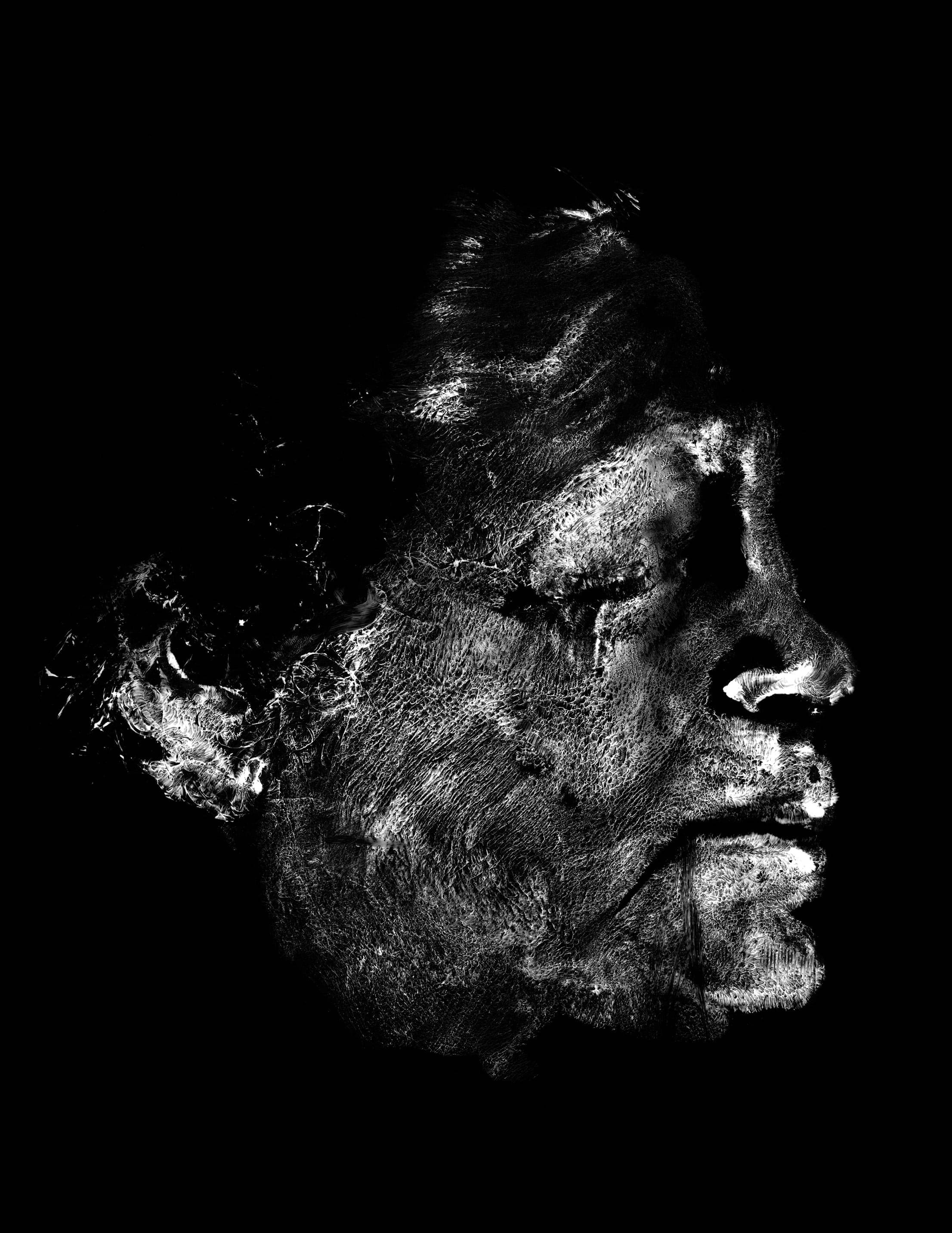'Ashes' is a series of photograms showing the facial imprint of different individuals. Years ago, when I renewed my passport, I learned that my fingerprints were eroded to the point of being virtually unrecognizable. I wondered who I was.