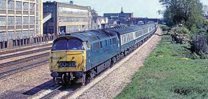1: ‘Peak’ No. D107 (later 45120) heads south through Wood End, Warwickshire, with an inter-regional train to the Western Region on June 10, 1973. Wood End is on the Birmingham to Stratford-upon-Avon line, which until 1976 continued on through Broadway and the present day Gloucestershire-Warwickshire Railway to Cheltenham and the South West.