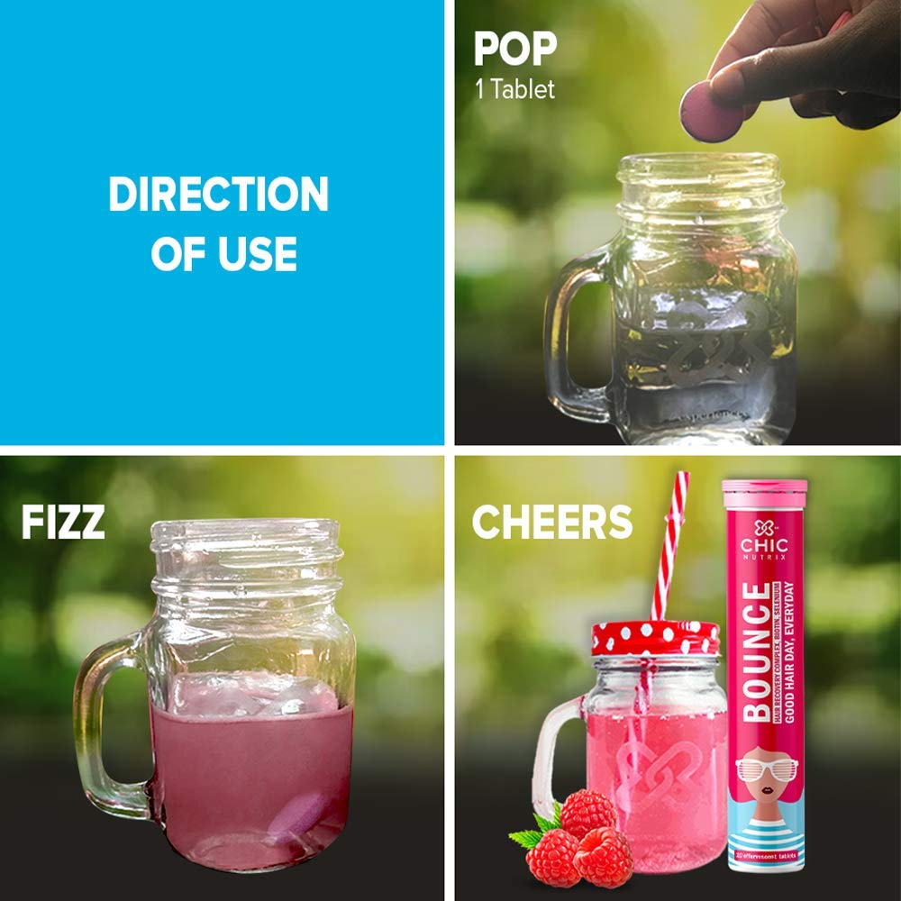 Seasonal changes, motherhood, lack of sleep, nutrient deficiency etc. affect our hair health. But we often don’t have the time to go to the salon to tame our tresses. Good hair health is now just a hydrating drink away. Chicnutrix Bounce, a specially formulated, hassle-free, effervescent product that makes your hair healthy. Just pop one pill into a glass of water and it gives your hair all the nutrition it needs.