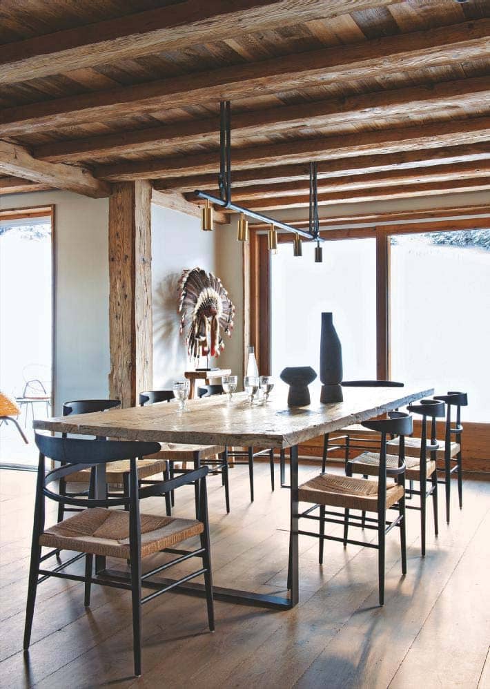 Victoria Wolf juxtaposed reclaimed wood with sleek materials such as glass and steel to create this breathtaking Alpine chalet