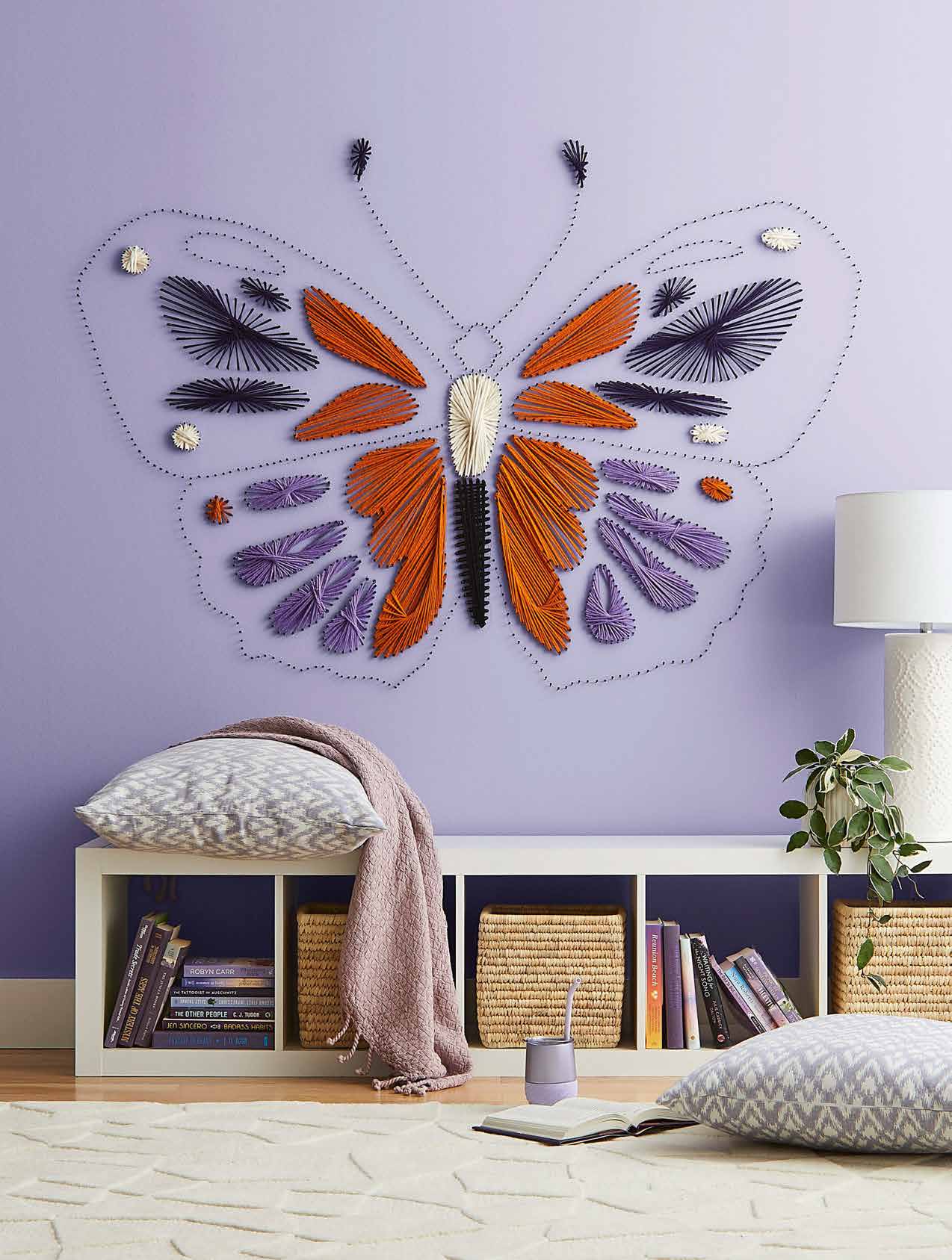 String art has been popular for eons. Hardly surprising as it's relatively simple and doesn't require a whole lot of tools or supplies to be creative. This vibrant winged beauty is bound to bring you joy.