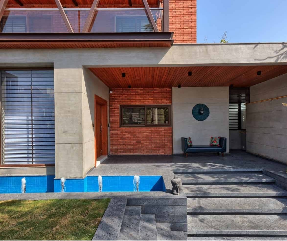 The Tathastu, a word of Sanskrit origin often heard in mythological series which means to grant a wish, literal meaning “so be it“. This pure concrete and-red brick facade mansion in Nadiad, Gujarat is the family home of Subhash Shah, a civil engineer.