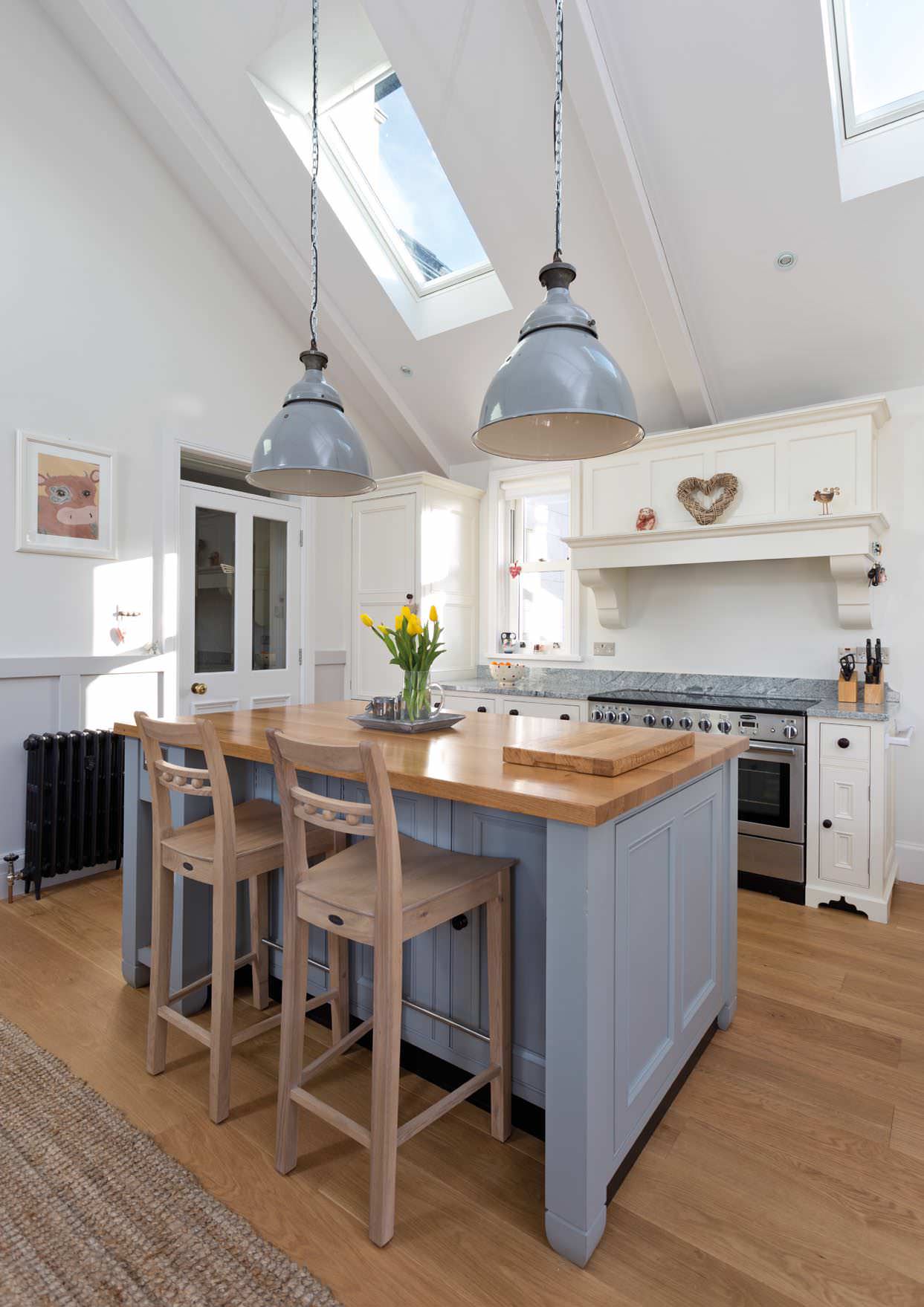 As Patricia explains, ‘The kitchen was half the size it is now. We extended and created an open-plan space to include the adjacent family room. My brother, David Henderson, is a builder and he did a great job. Extending the kitchen has allowed for more natural light into the back of the house with the two velux windows in the ceiling and for this reason we also added the Baskil wooden doors with glass panels which lead out to the patio area, which is perfect for a table and chairs outside in the warmer weather. We also sympathetically replaced our old sash windows in this part of the house.