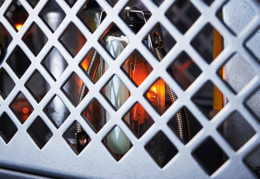 The first thing we look for in low-priced valve amps is corner-cutting, so we’re pleased to see the Mighty-15TH is built to last, with attention to detail evident in both its design and build. The precision-folded steel case is thicker than some lunchbox-style products we’ve seen, adding reassuring weight when you pick up the amp by its folding carry handle. All the case components fit together nicely, with no sharp edges. Meanwhile, the exterior is neatly finished in satin black enamel, and has contrasting silver paint for the front and rear grilles, and white lettering for the control panel.