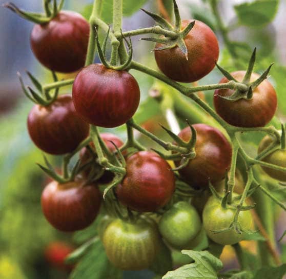 This cordon variety produces large tomatoes with purple-brown skin and flesh, held in multi-branching trusses. It is open-pollinated, so if you save seed, the resulting plants are likely to be true to type.