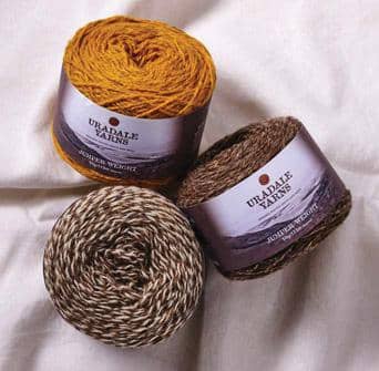 This classic textured scarf is knitted using undyed shades of organic Shetland wool